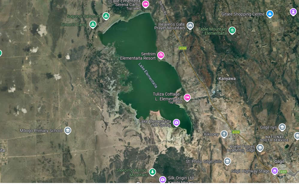 Lake Elementaita is an alkaline lake that lies between Lake Naivasha and Lake Nakuru on the Rift Valley floor.